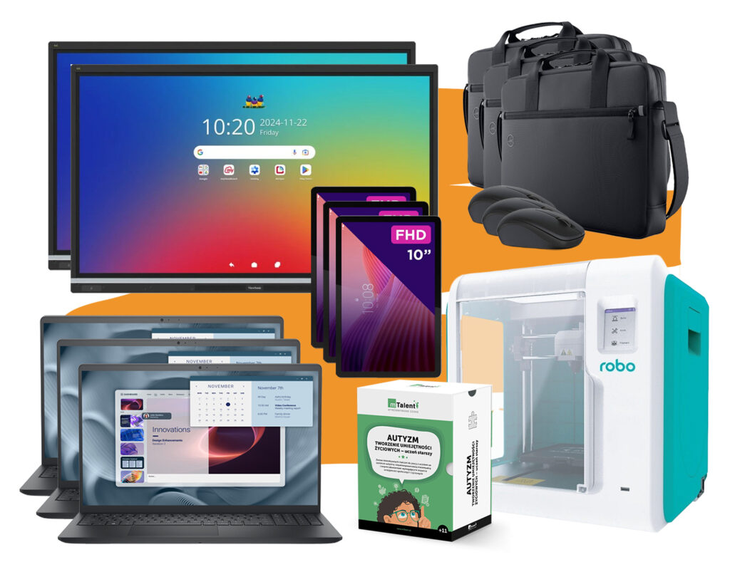 Zestaw przeznaczony do wyposażenia dwóch przestrzeni: sali lekcyjnej oraz gabinetu specjalistycznego (SPE).